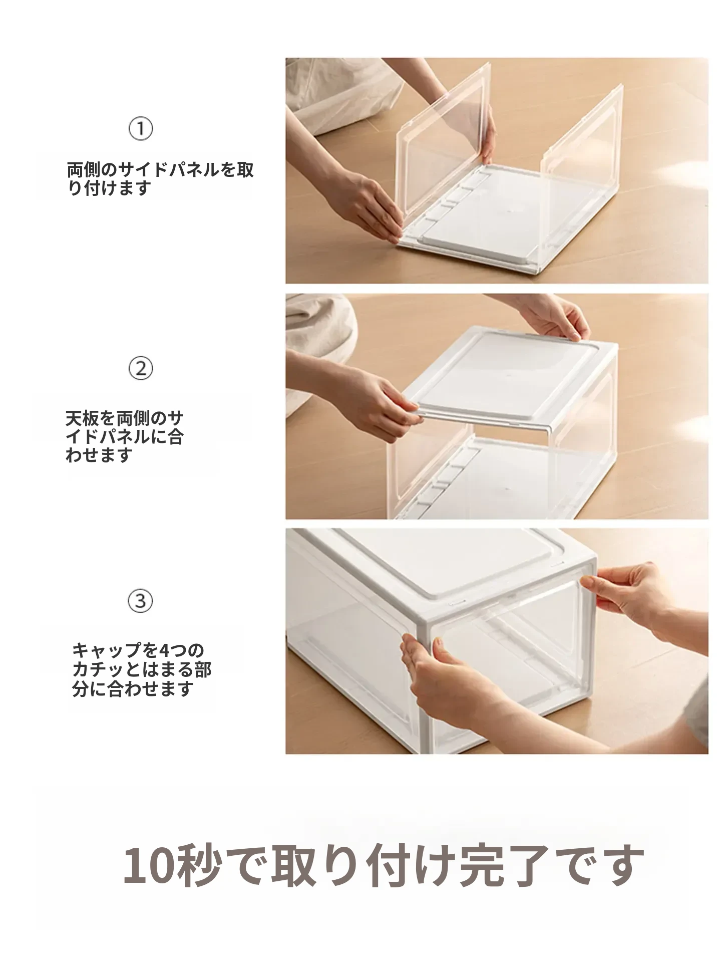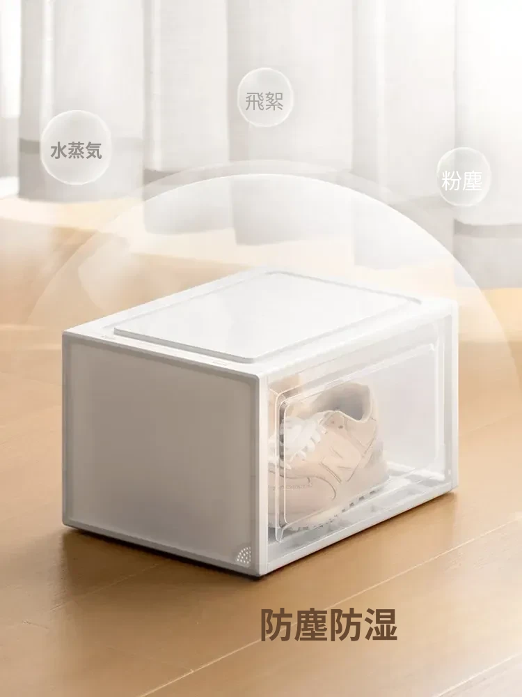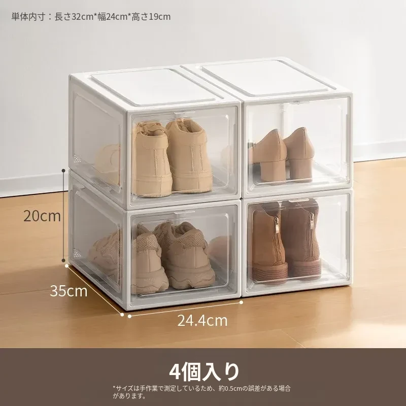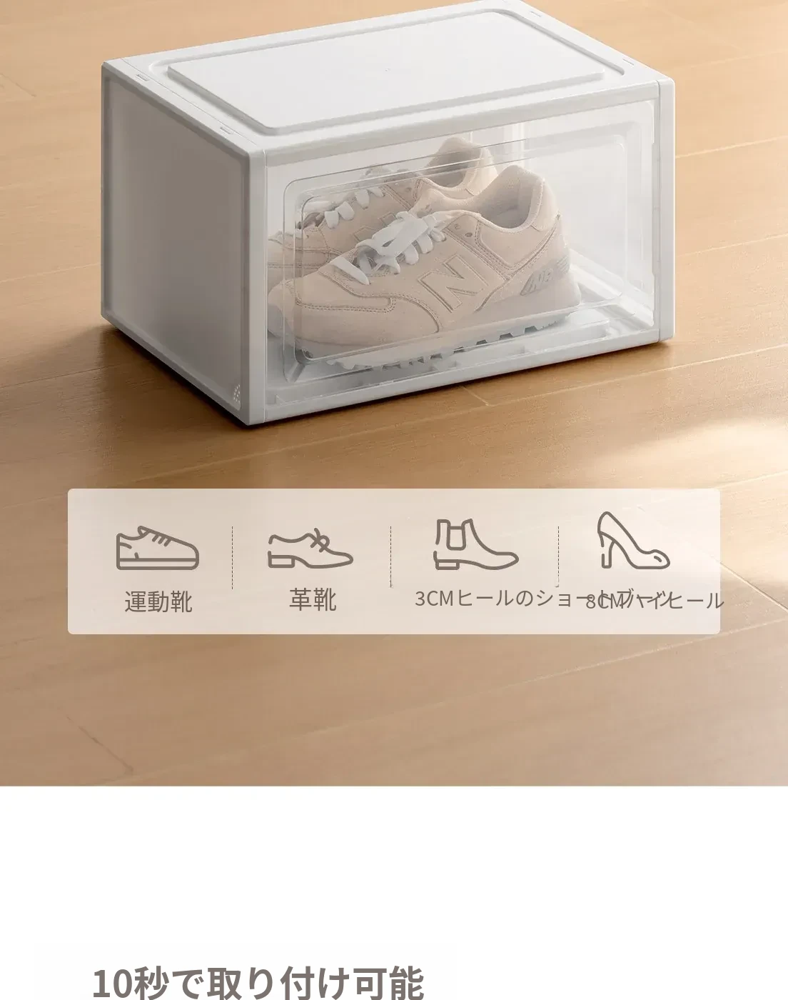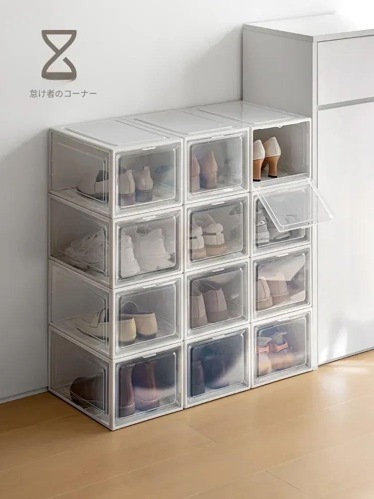 「ラクなコーナー シューズボックス 透明防塵シューズ収納ケース 厚手プラスチック製 簡単組立 靴整理ボックス」