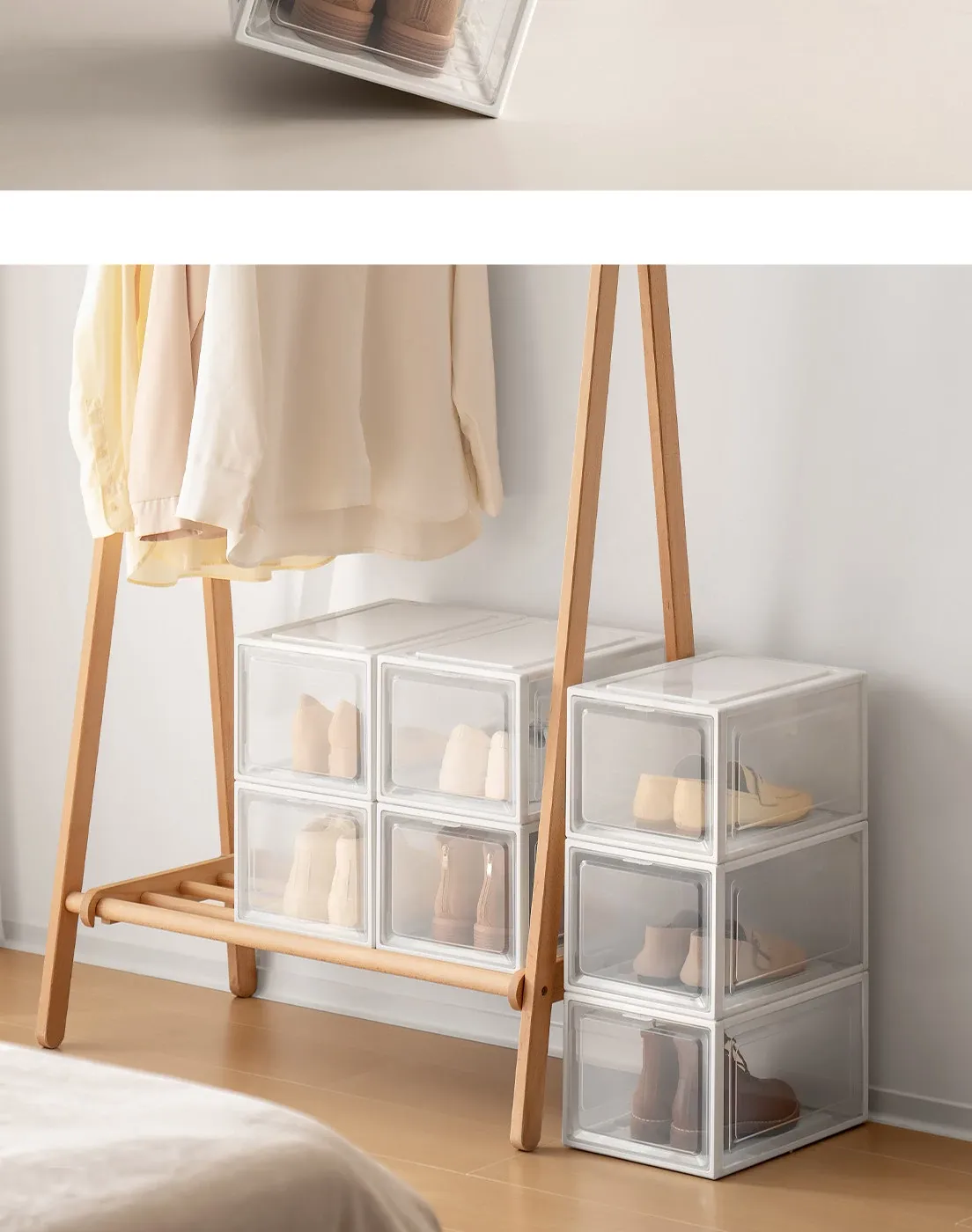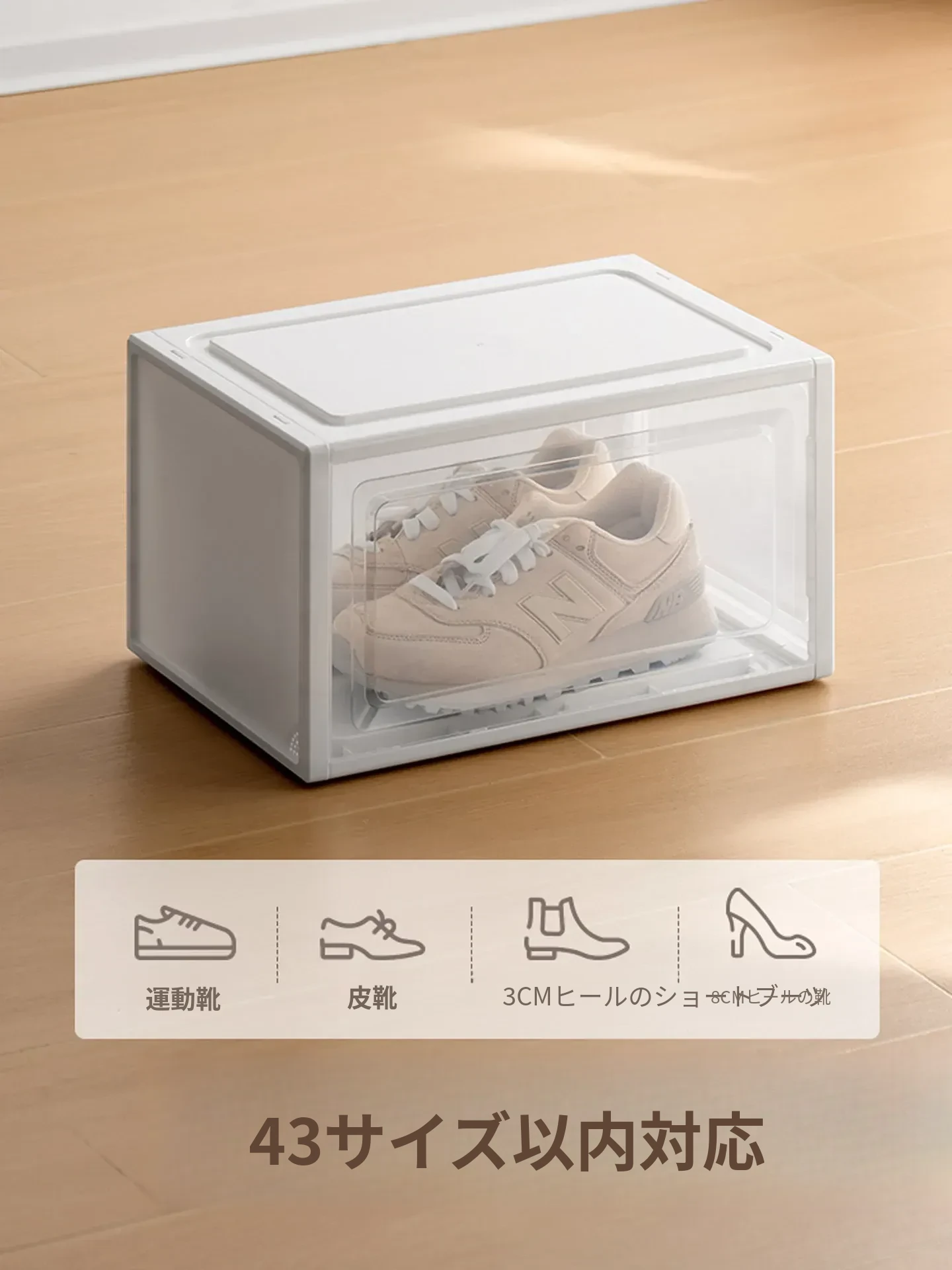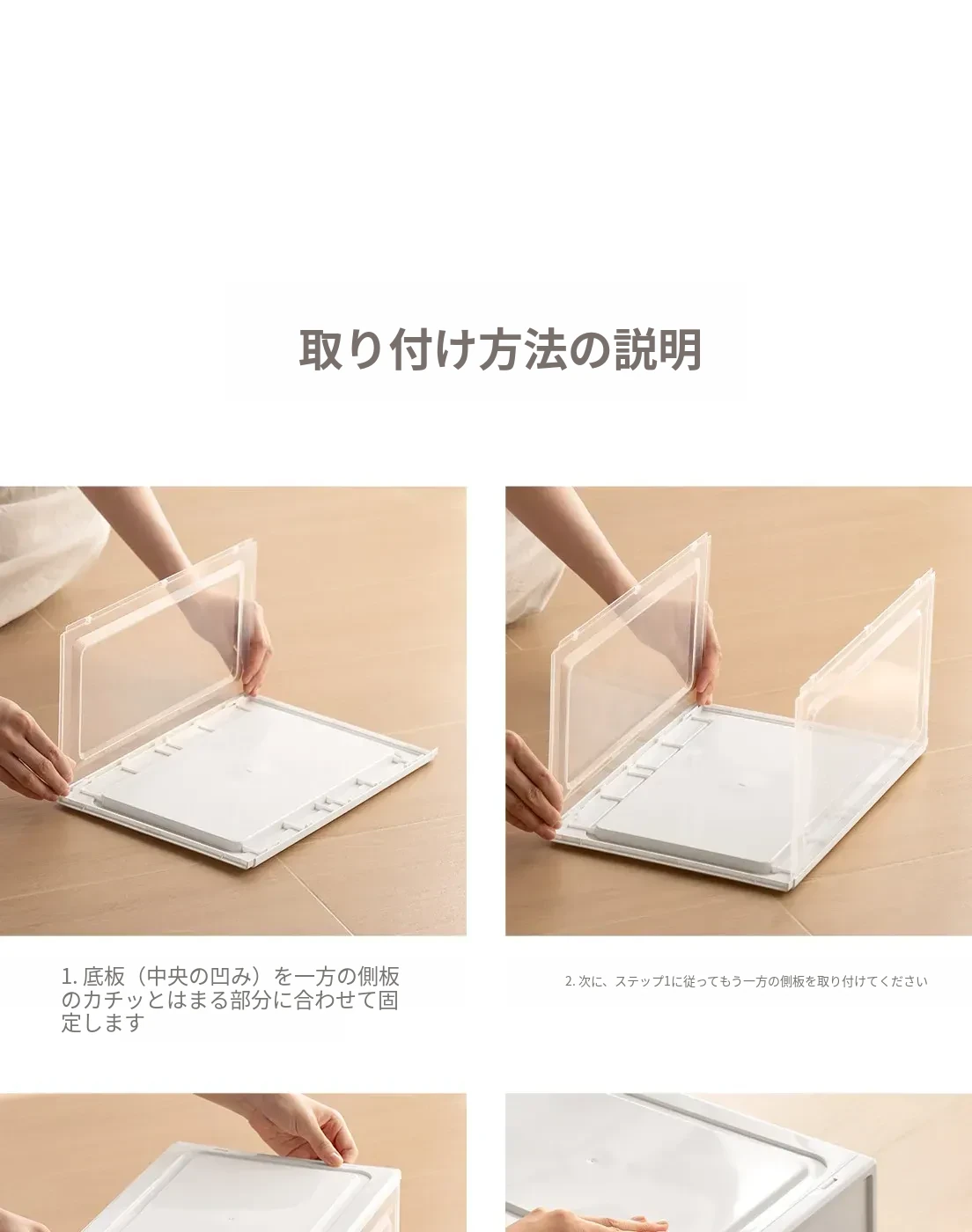 「ラクなコーナー シューズボックス 透明防塵シューズ収納ケース 厚手プラスチック製 簡単組立 靴整理ボックス」
